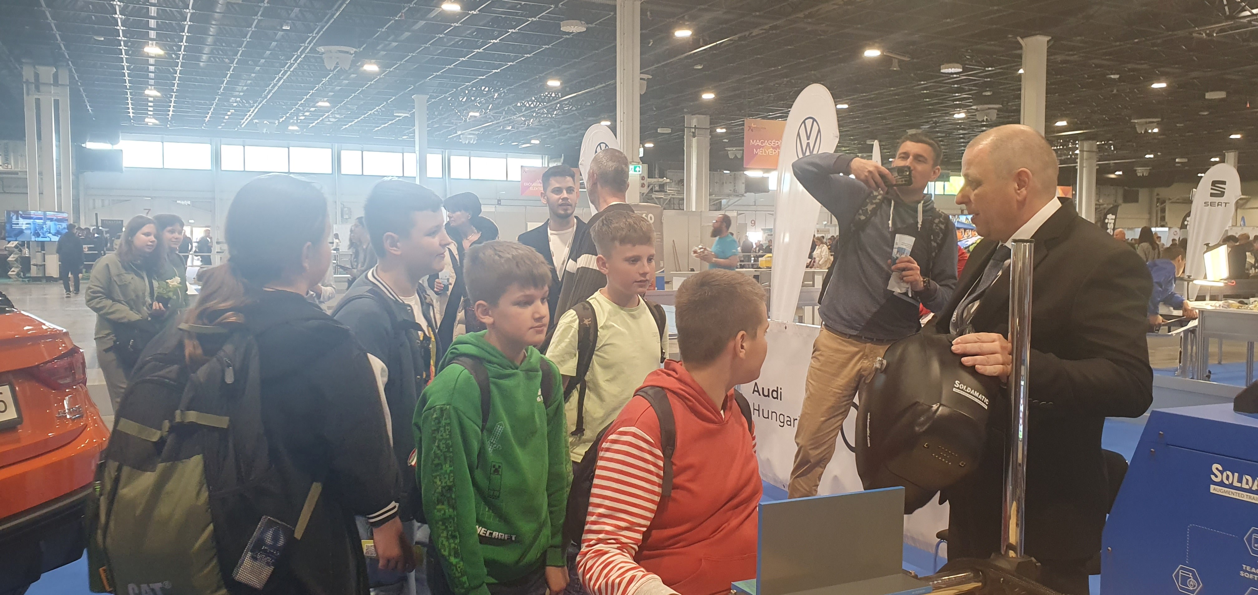 A mai napon ismét ellátogatott hozzánk Kiss Péter kollégám, aki a Mobillabor program keretében ismét különlegesebbnél különlegesebb kísérlettel kápráztatott el minket. Idén szinte olyan kísérletekkel érkezett, amelyeket tanulók segítségével oldott meg. A tanulókkal készítettek elefántfogkrémet, lángot festettek, meggyújtották a metil-alkoholt. Villámokat állított elő egy kémcsőben.