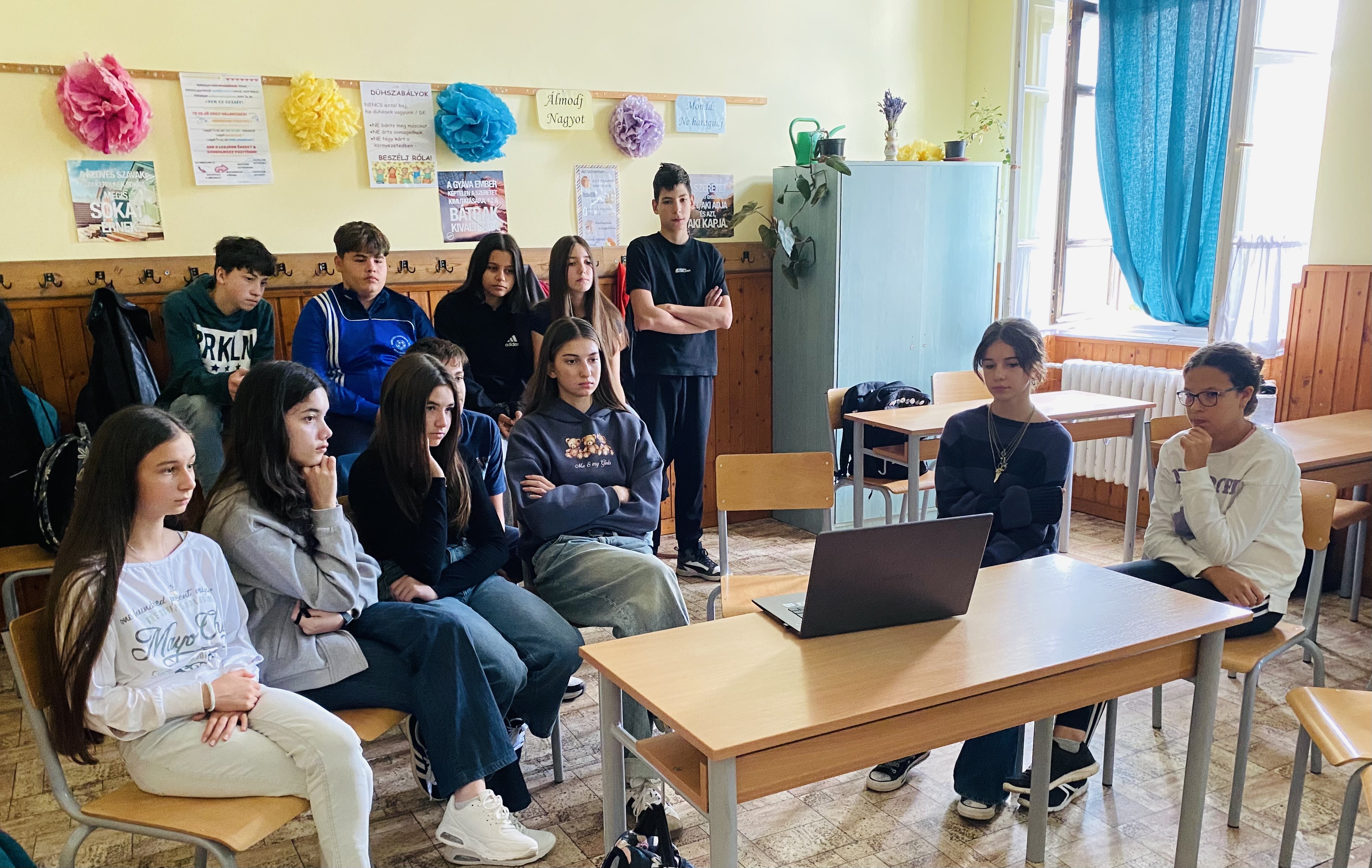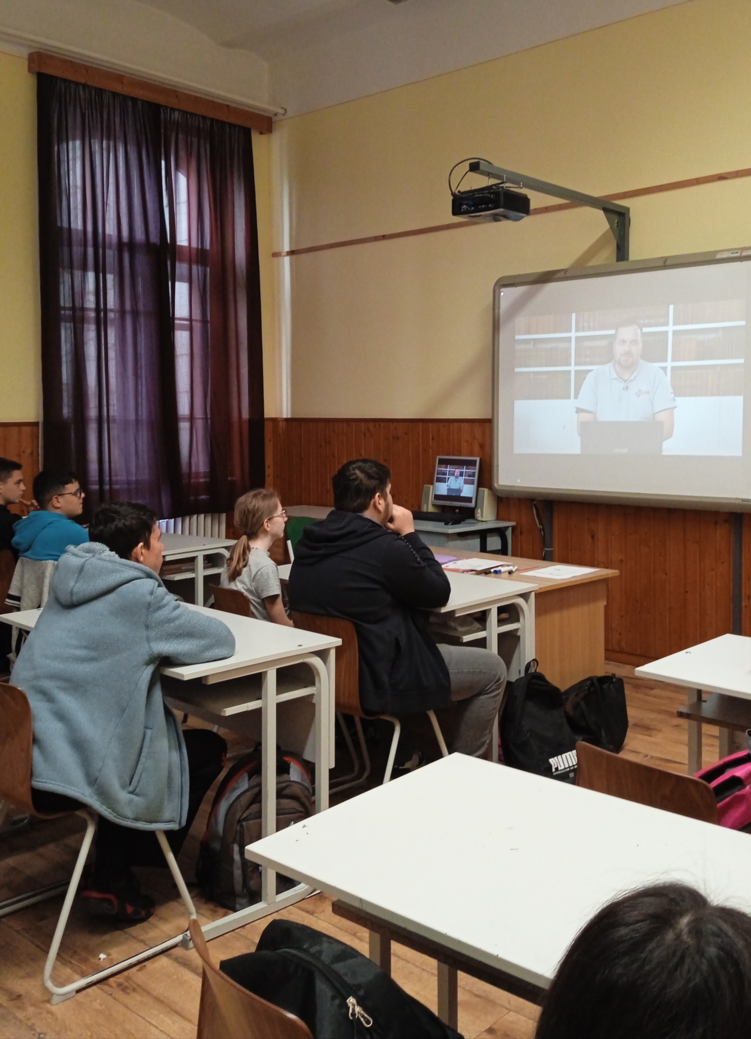A mai napon ismét ellátogatott hozzánk Kiss Péter kollégám, aki a Mobillabor program keretében ismét különlegesebbnél különlegesebb kísérlettel kápráztatott el minket. Idén szinte olyan kísérletekkel érkezett, amelyeket tanulók segítségével oldott meg. A tanulókkal készítettek elefántfogkrémet, lángot festettek, meggyújtották a metil-alkoholt. Villámokat állított elő egy kémcsőben.