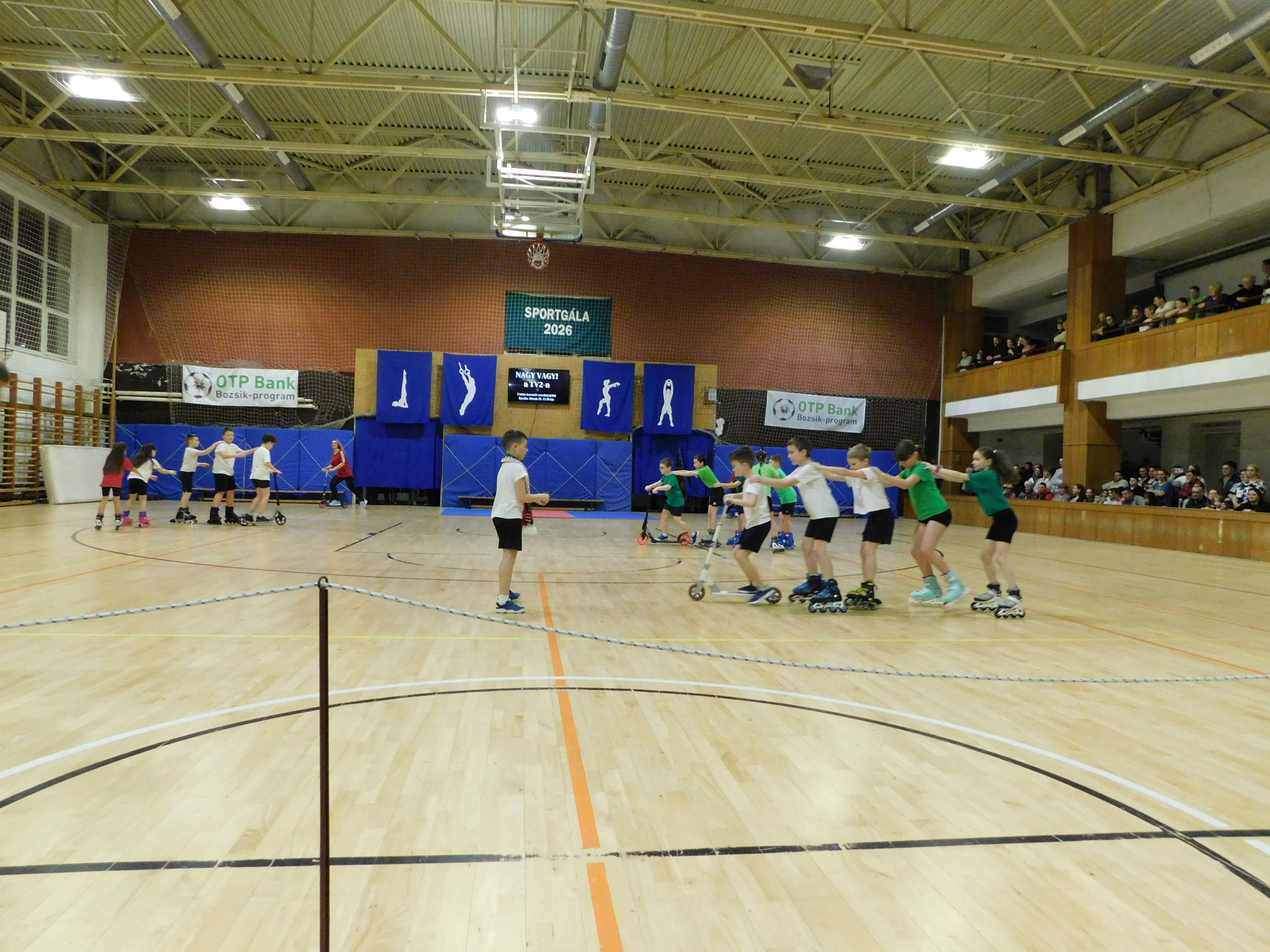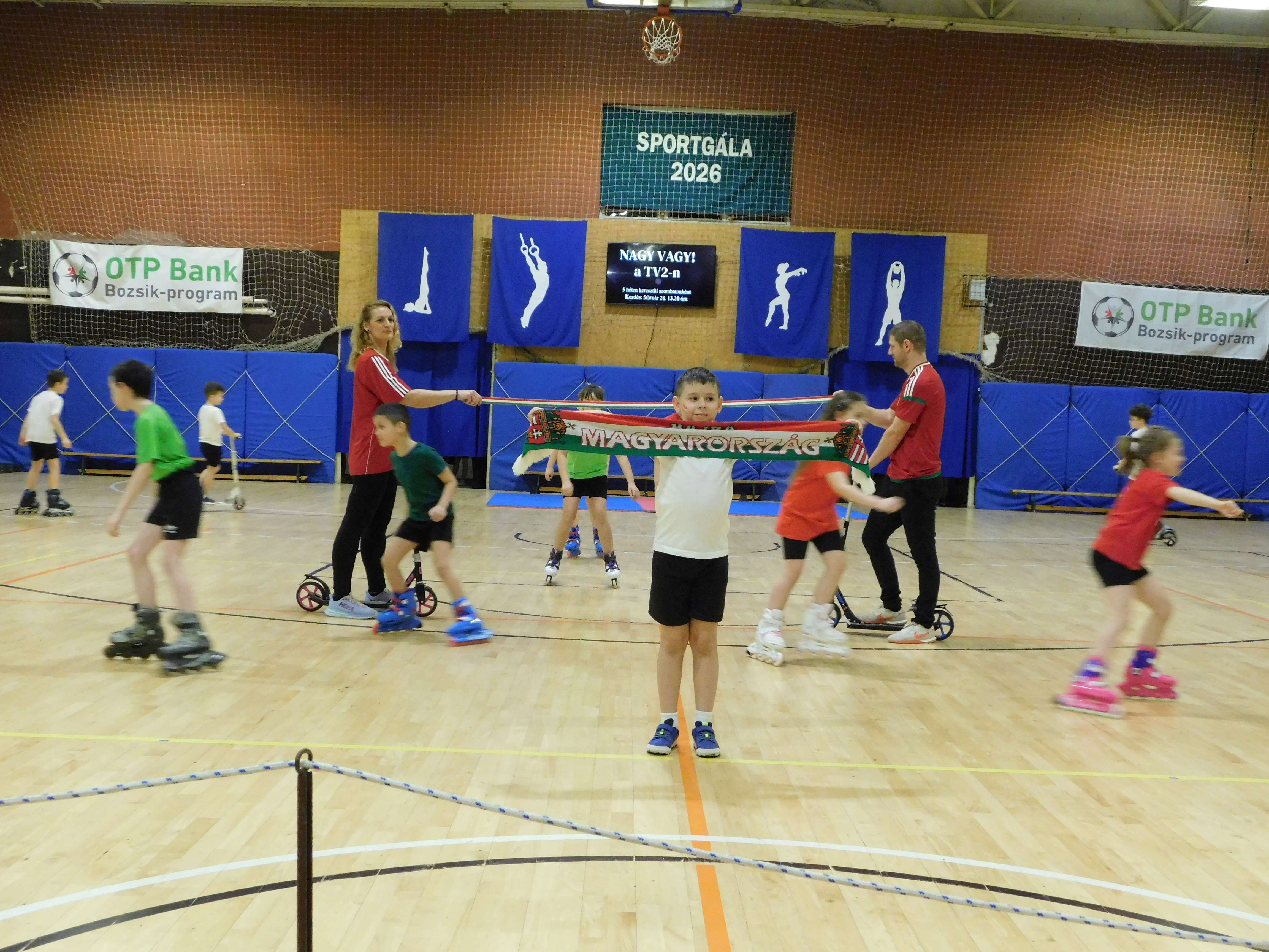 Iskolánk 2026. február 27-én rendezte meg a ma már hagyományos rendezvényét, a Sportgálát. A nézőtéren helyet foglaló szülők közül sokaknak él még az emlékezetében, hogy diák korukban milyen műsorral készültek erre a jeles eseményre, és milyen nagy izgalommal adták elő azokat. Most pedig hasonló izgalommal várták gyermekeik produkcióját, mert tudták, hogy mennyi közös munka, előkészület, gyakorlás, próba előz meg egy ilyen műsort.