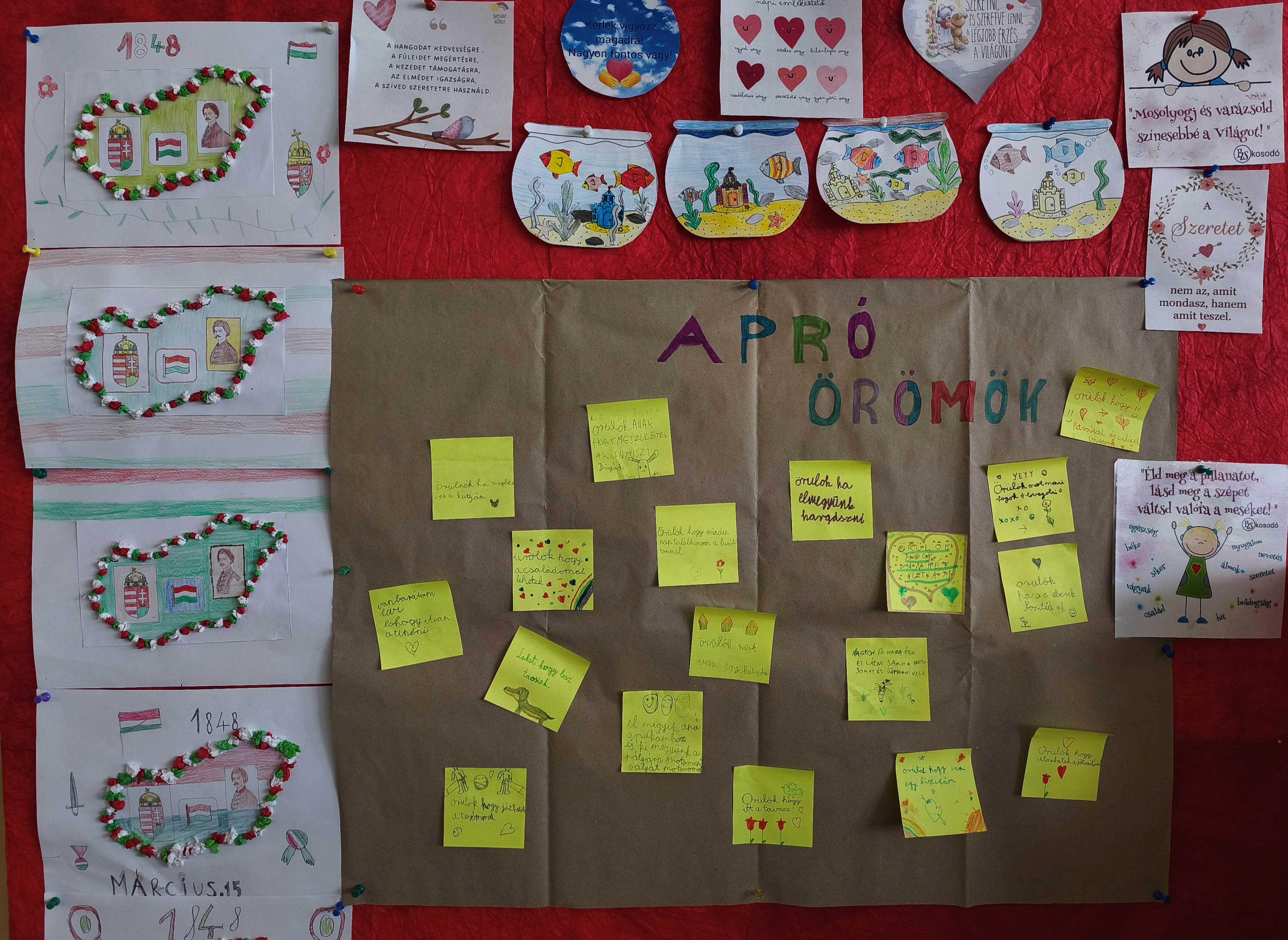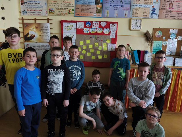 Március hónapban a Boldogságóra Program ajánlott témaköre az Apró örömök. Beszélgetőkörben az örömről beszélgettünk. Mi az öröm, mi okoz nekünk örömet, hogy tudunk mi örömet okozni másoknak. Majd a kisebb és nagyobb öröm átéléséhez gyűjtöttünk példákat. A hónap során igyekeztünk figyelmünket az apró örömök észrevételére, megélésére irányítani.