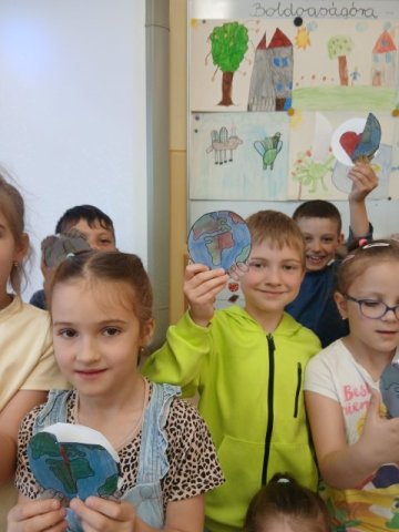 A Föld napja alkalmából az alsó tagozatos tanulók körében változatos és élményekben gazdag programokkal hívtuk fel a figyelmet bolygónk védelmének fontosságára. Az 1.c osztály tanulói játékos formában ismerkedtek a témával: a gyerekek a Földhöz kapcsolódó szavakat gyűjtöttek, majd ezeket le is másolták. A közös beszélgetés során megfogalmazták, miért fontos vigyáznunk a környezetünkre, és ők maguk mit tehetnek ezért a mindennapokban.