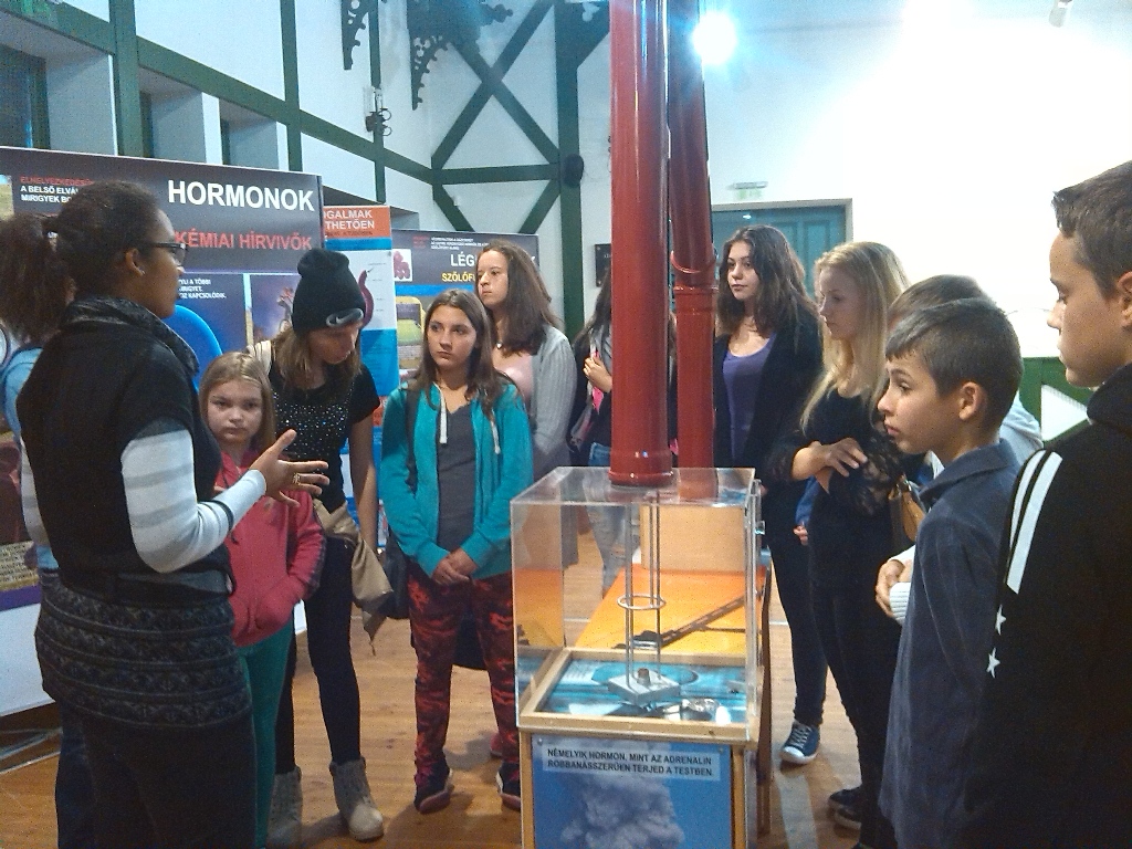 A mai napon ismét ellátogatott hozzánk Kiss Péter kollégám, aki a Mobillabor program keretében ismét különlegesebbnél különlegesebb kísérlettel kápráztatott el minket. Idén szinte olyan kísérletekkel érkezett, amelyeket tanulók segítségével oldott meg. A tanulókkal készítettek elefántfogkrémet, lángot festettek, meggyújtották a metil-alkoholt. Villámokat állított elő egy kémcsőben.