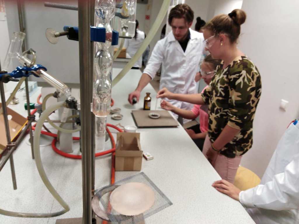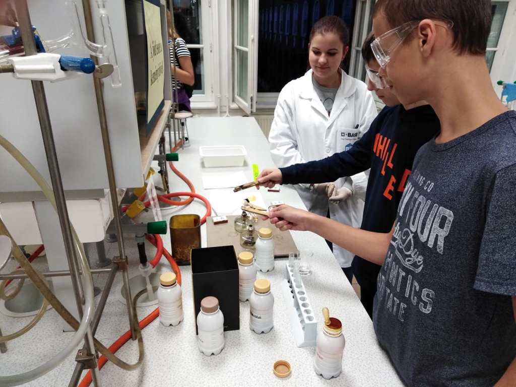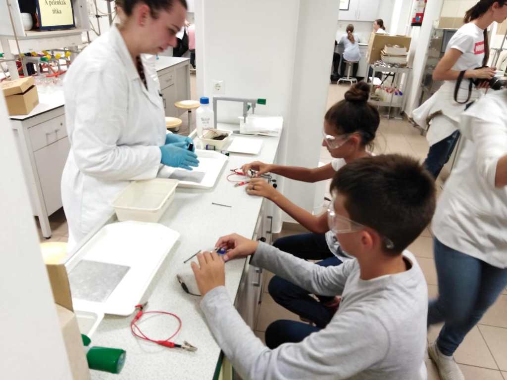 A mai napon ismét ellátogatott hozzánk Kiss Péter kollégám, aki a Mobillabor program keretében ismét különlegesebbnél különlegesebb kísérlettel kápráztatott el minket. Idén szinte olyan kísérletekkel érkezett, amelyeket tanulók segítségével oldott meg. A tanulókkal készítettek elefántfogkrémet, lángot festettek, meggyújtották a metil-alkoholt. Villámokat állított elő egy kémcsőben.