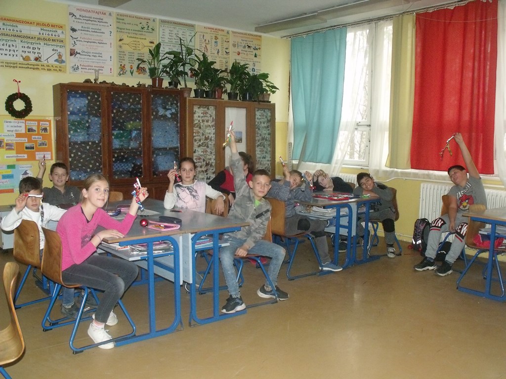 A mai napon ismét ellátogatott hozzánk Kiss Péter kollégám, aki a Mobillabor program keretében ismét különlegesebbnél különlegesebb kísérlettel kápráztatott el minket. Idén szinte olyan kísérletekkel érkezett, amelyeket tanulók segítségével oldott meg. A tanulókkal készítettek elefántfogkrémet, lángot festettek, meggyújtották a metil-alkoholt. Villámokat állított elő egy kémcsőben.