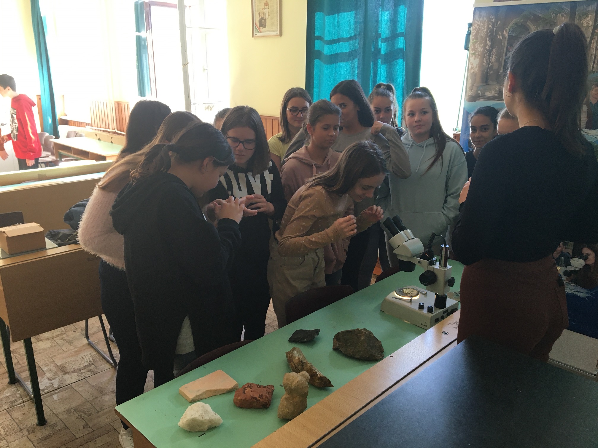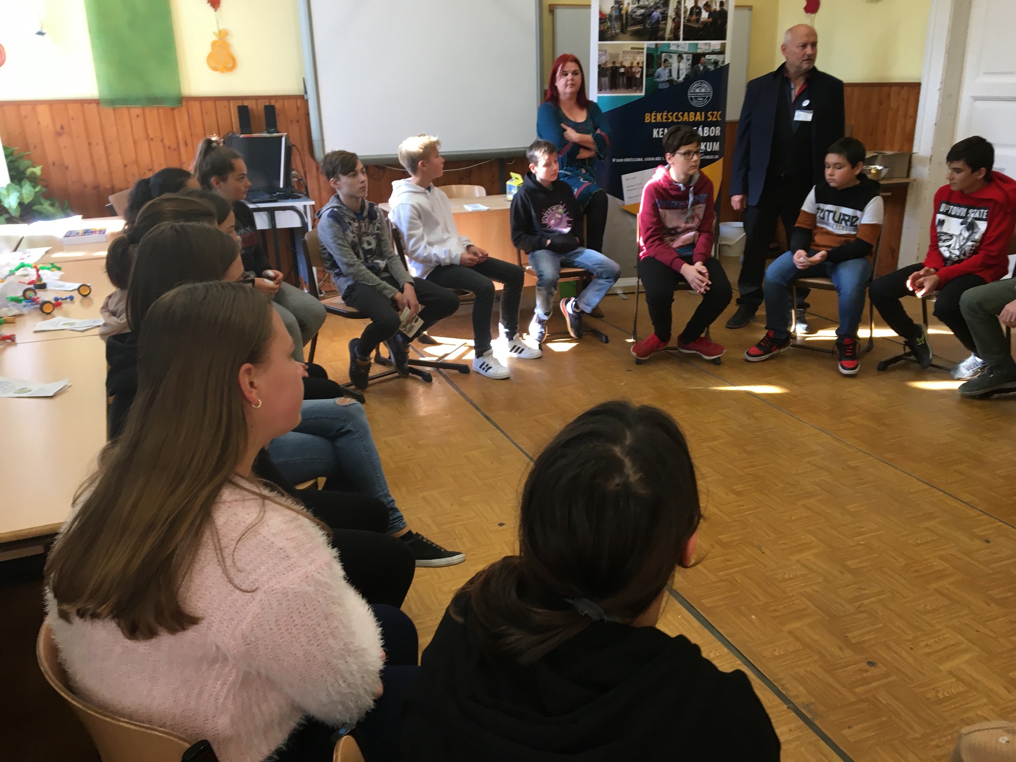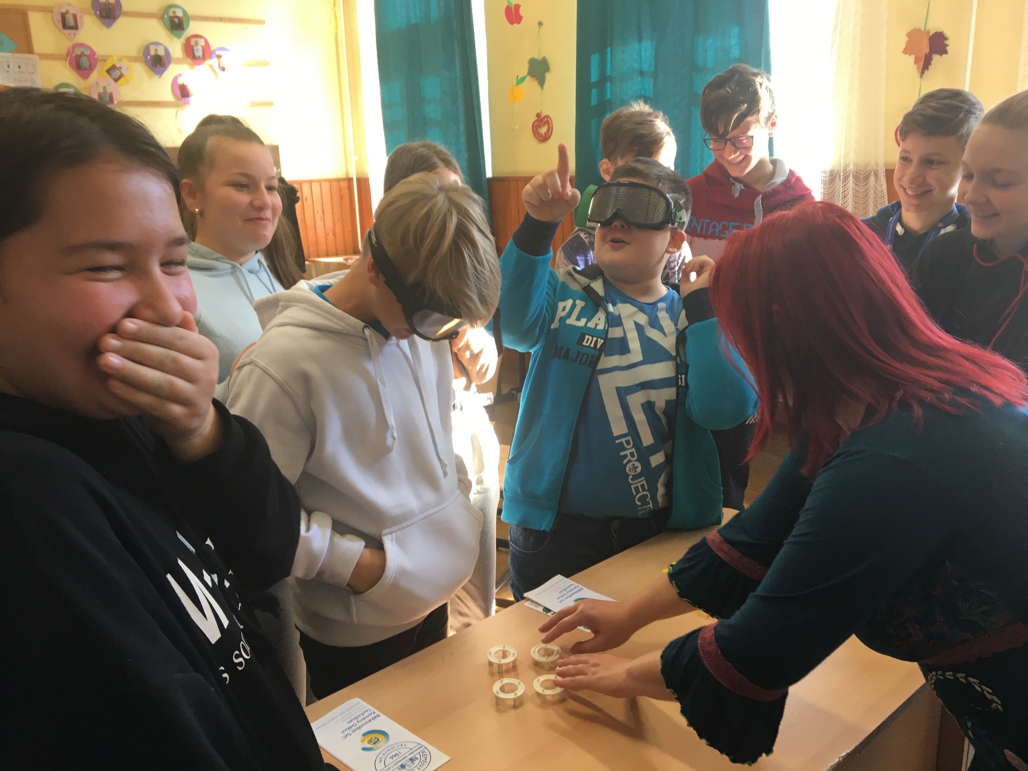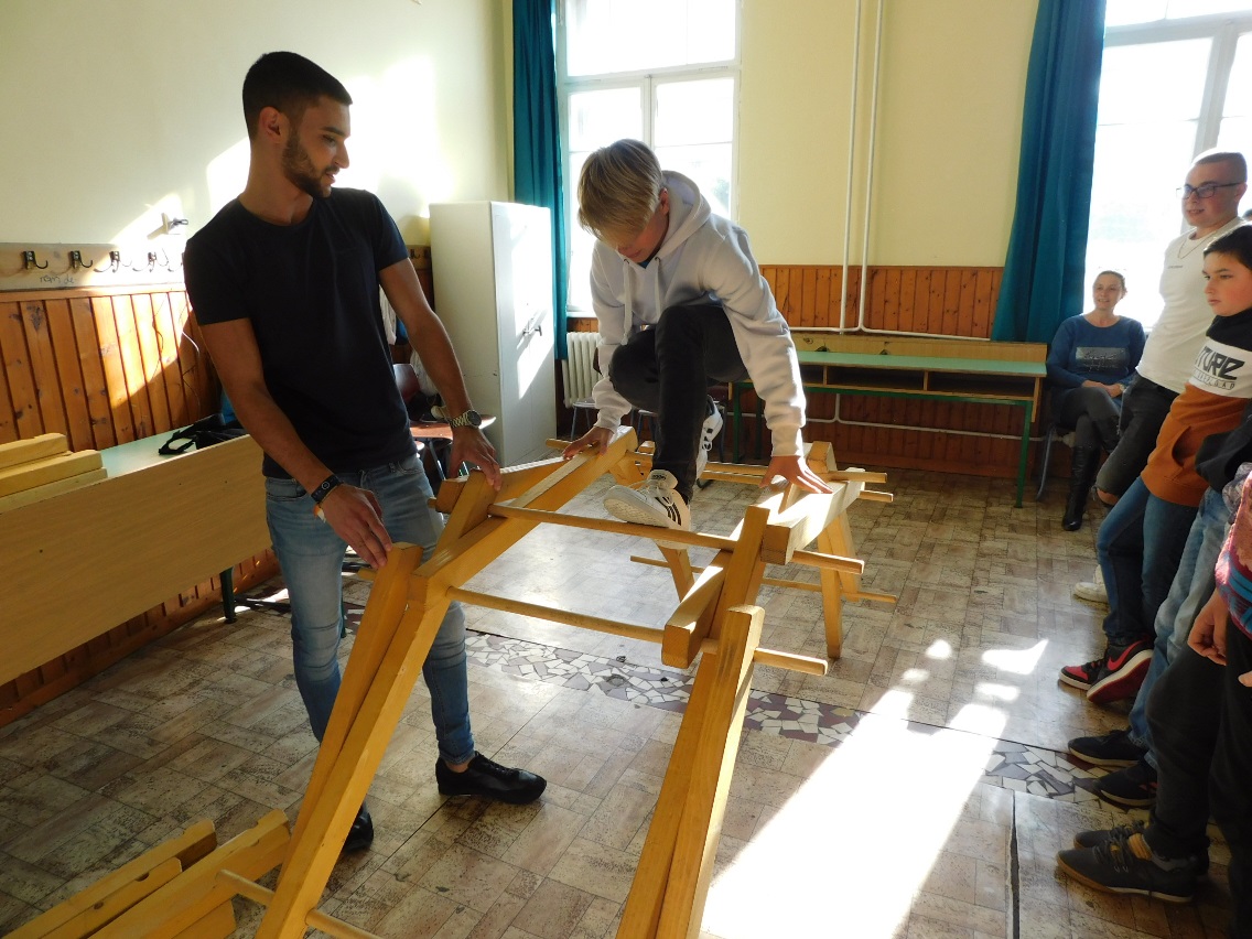 A mai napon ismét ellátogatott hozzánk Kiss Péter kollégám, aki a Mobillabor program keretében ismét különlegesebbnél különlegesebb kísérlettel kápráztatott el minket. Idén szinte olyan kísérletekkel érkezett, amelyeket tanulók segítségével oldott meg. A tanulókkal készítettek elefántfogkrémet, lángot festettek, meggyújtották a metil-alkoholt. Villámokat állított elő egy kémcsőben.