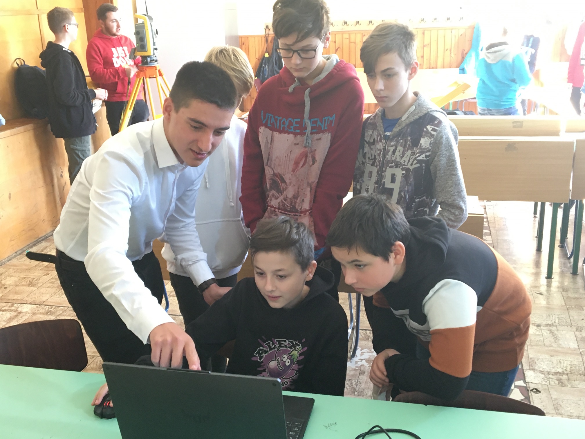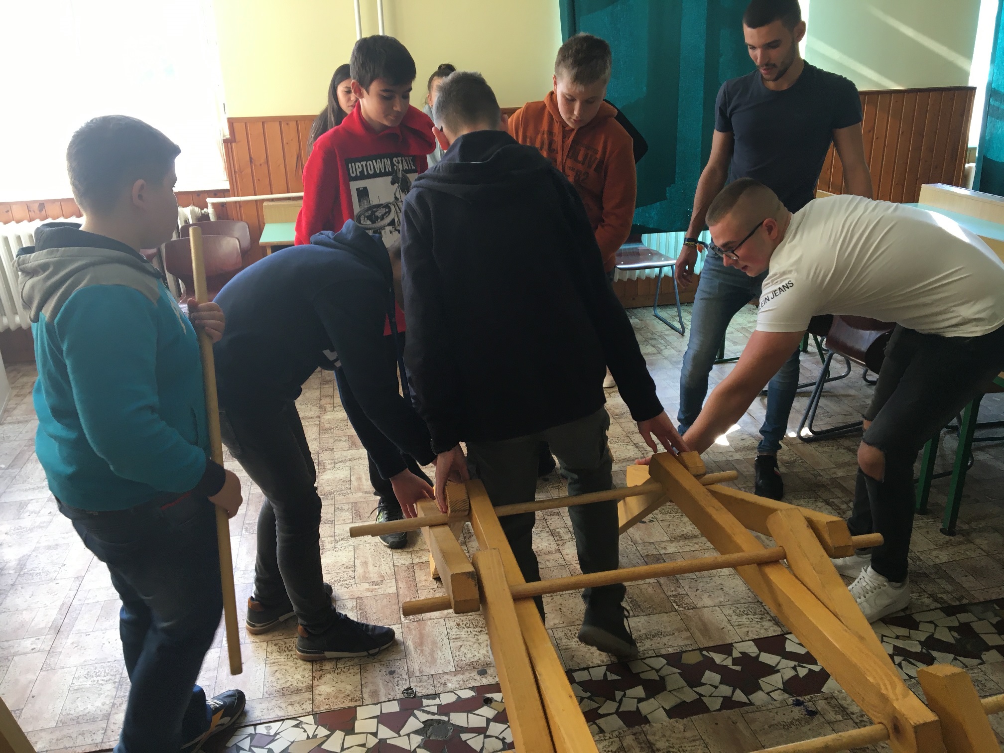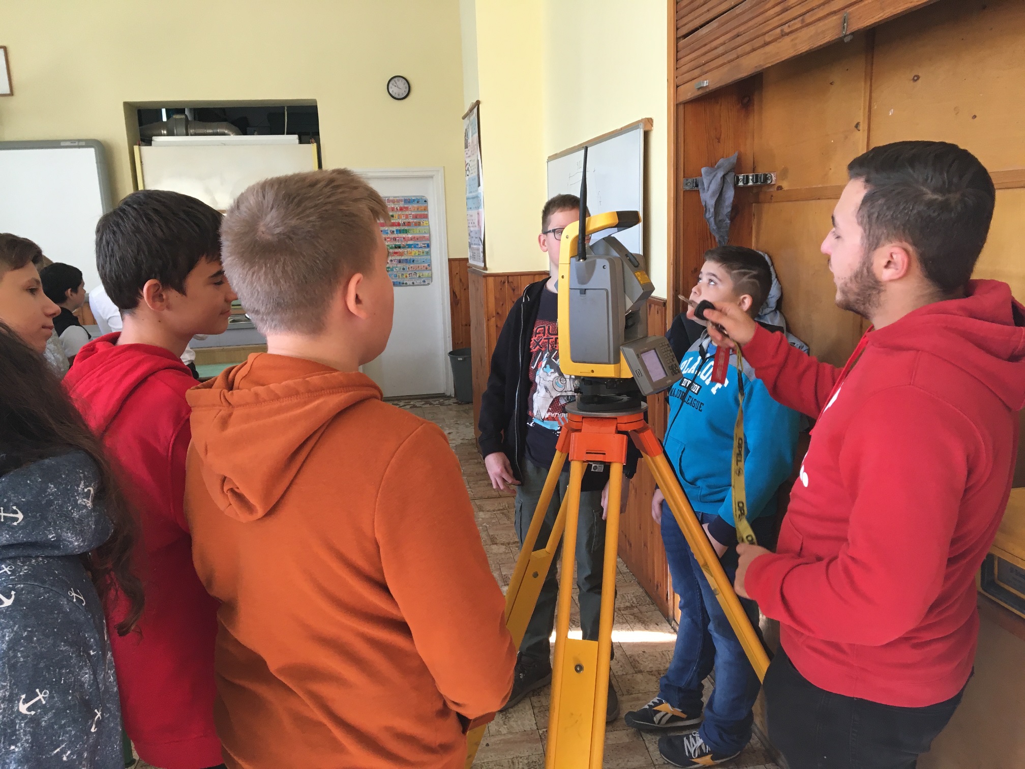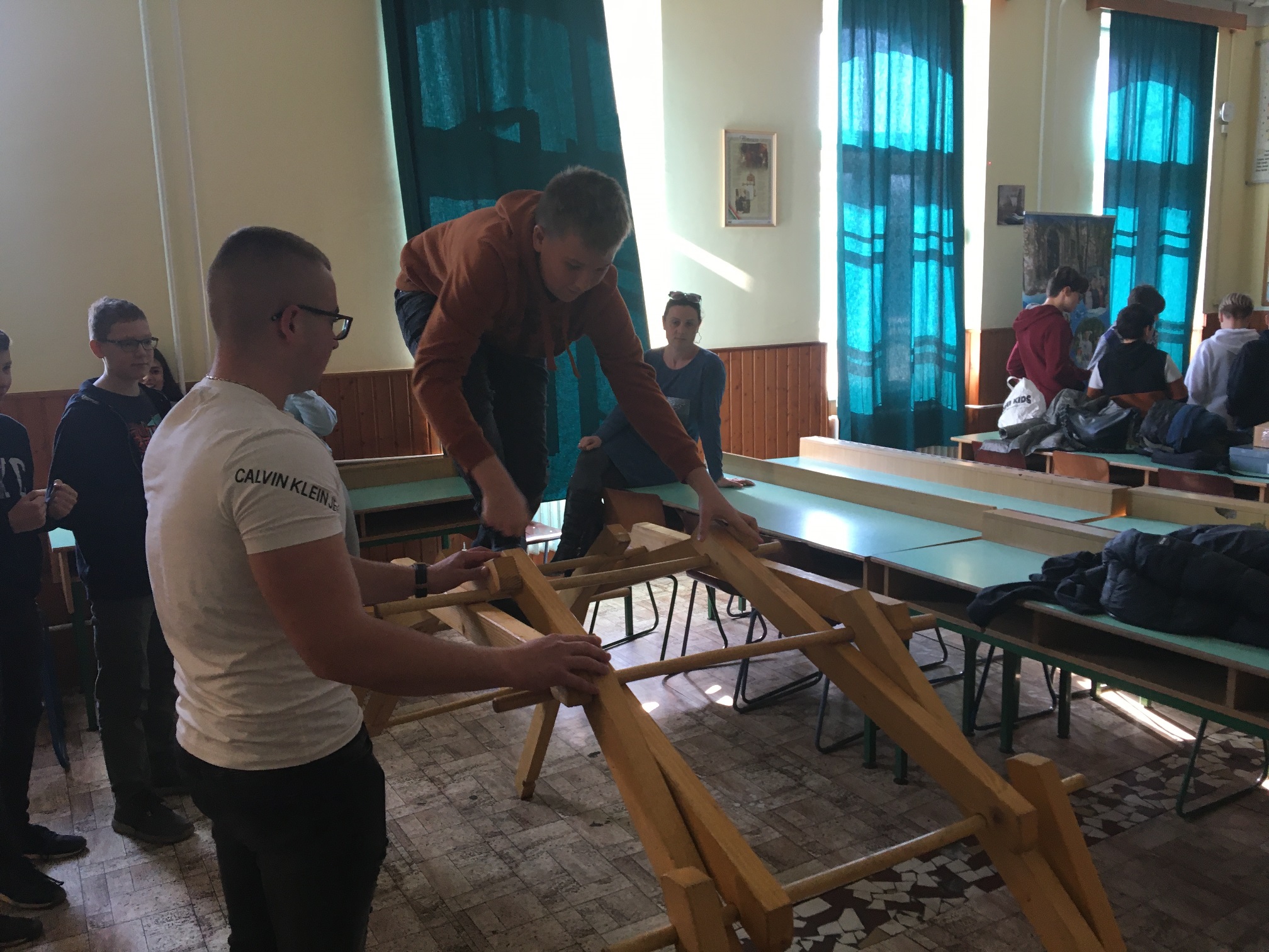 A mai napon ismét ellátogatott hozzánk Kiss Péter kollégám, aki a Mobillabor program keretében ismét különlegesebbnél különlegesebb kísérlettel kápráztatott el minket. Idén szinte olyan kísérletekkel érkezett, amelyeket tanulók segítségével oldott meg. A tanulókkal készítettek elefántfogkrémet, lángot festettek, meggyújtották a metil-alkoholt. Villámokat állított elő egy kémcsőben.