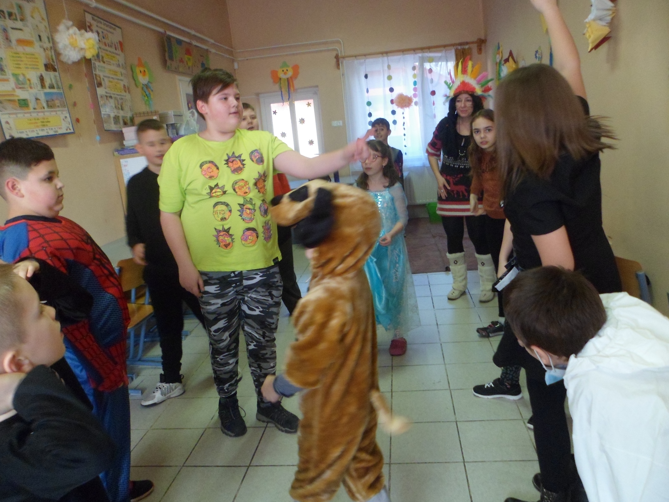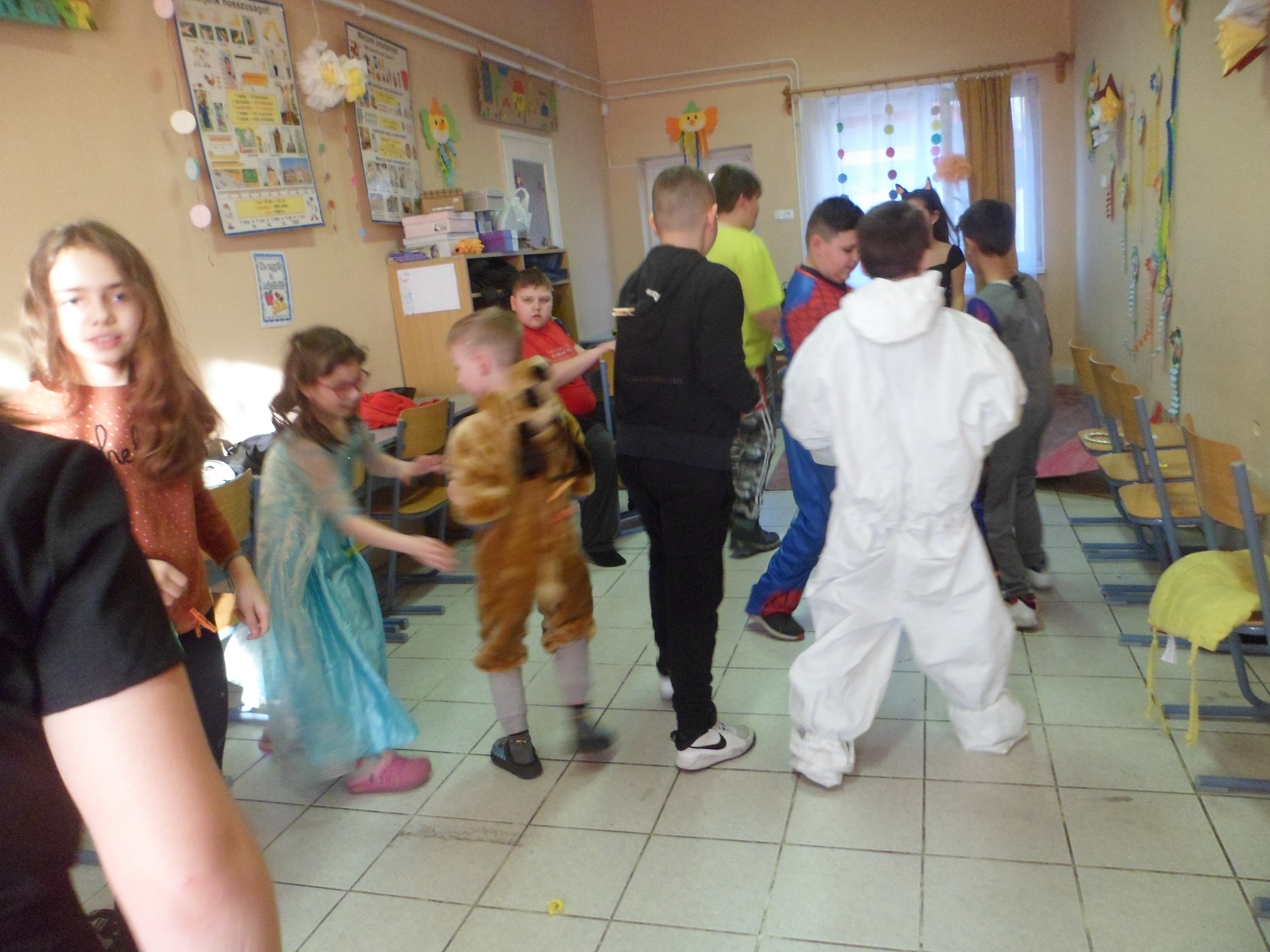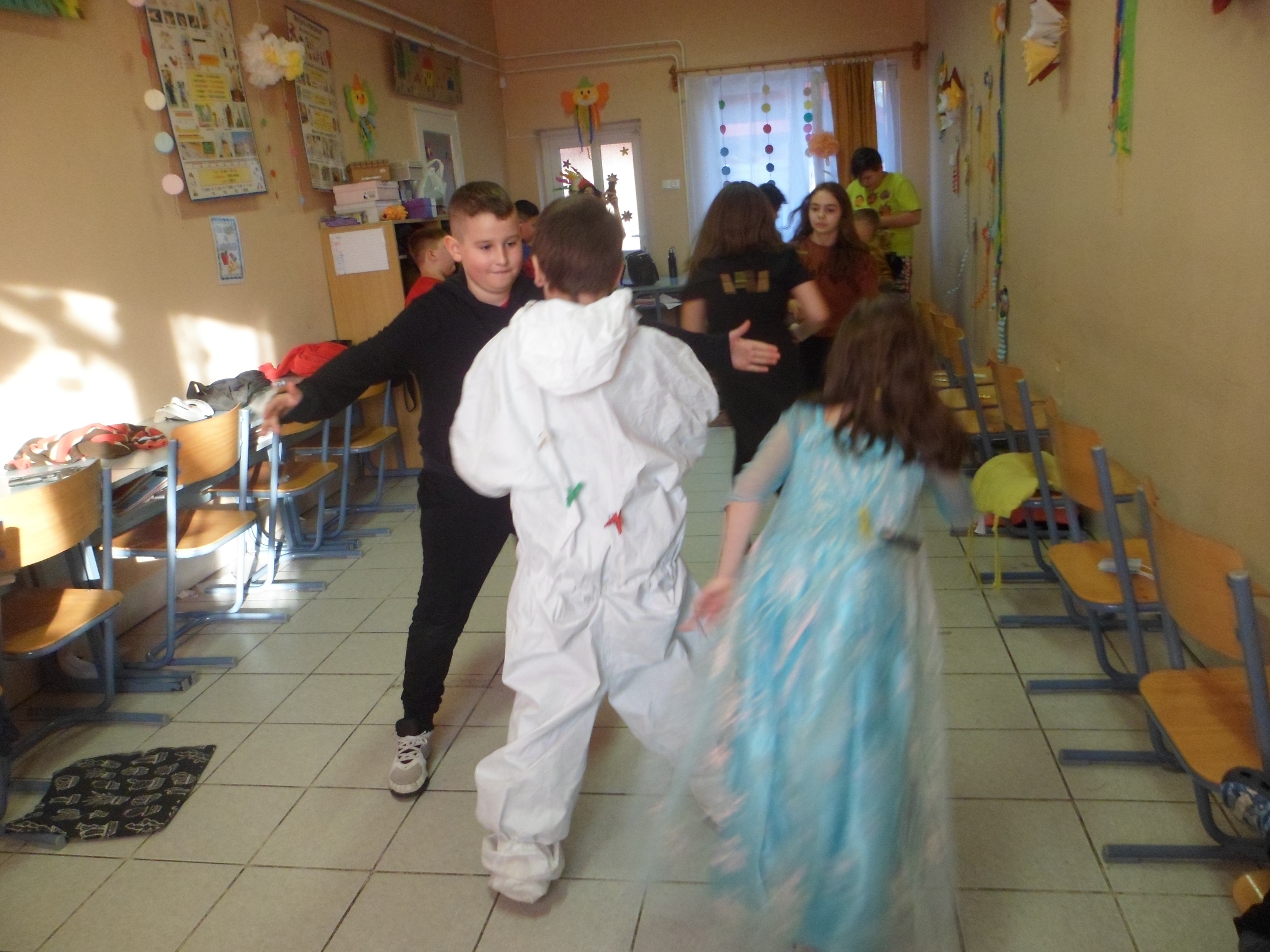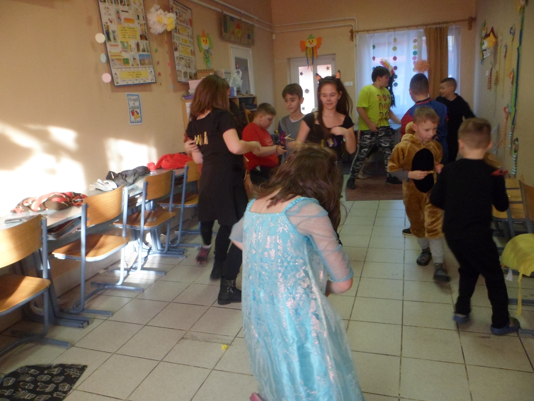 Az alsó évfolyamosok idén is jó hangulatban búcsúztatták a telet. A gyerekek már izgatottan érkeztek az iskolába, nagyon kíváncsiak voltak egymás jelmezeire. Az egész épületben örömmel teli és ünnepi hangulat uralkodott. Az osztályok jelmezversenyekkel, vidám játékokkal, zenehallgatással, énekléssel, közös tánccal töltötték a délelőttöt.