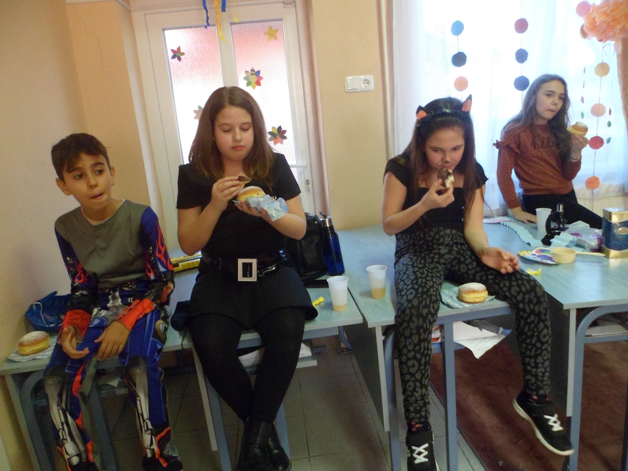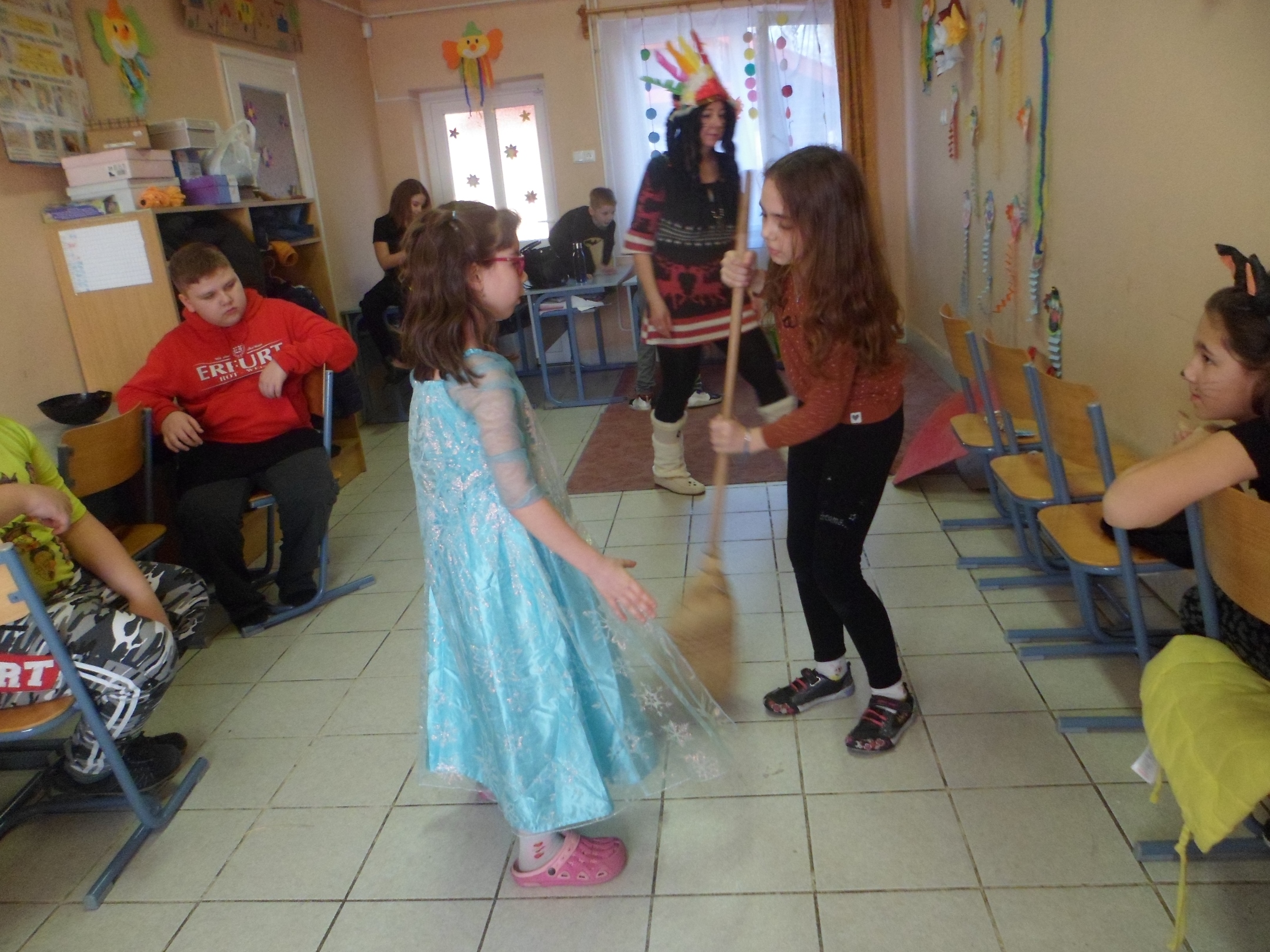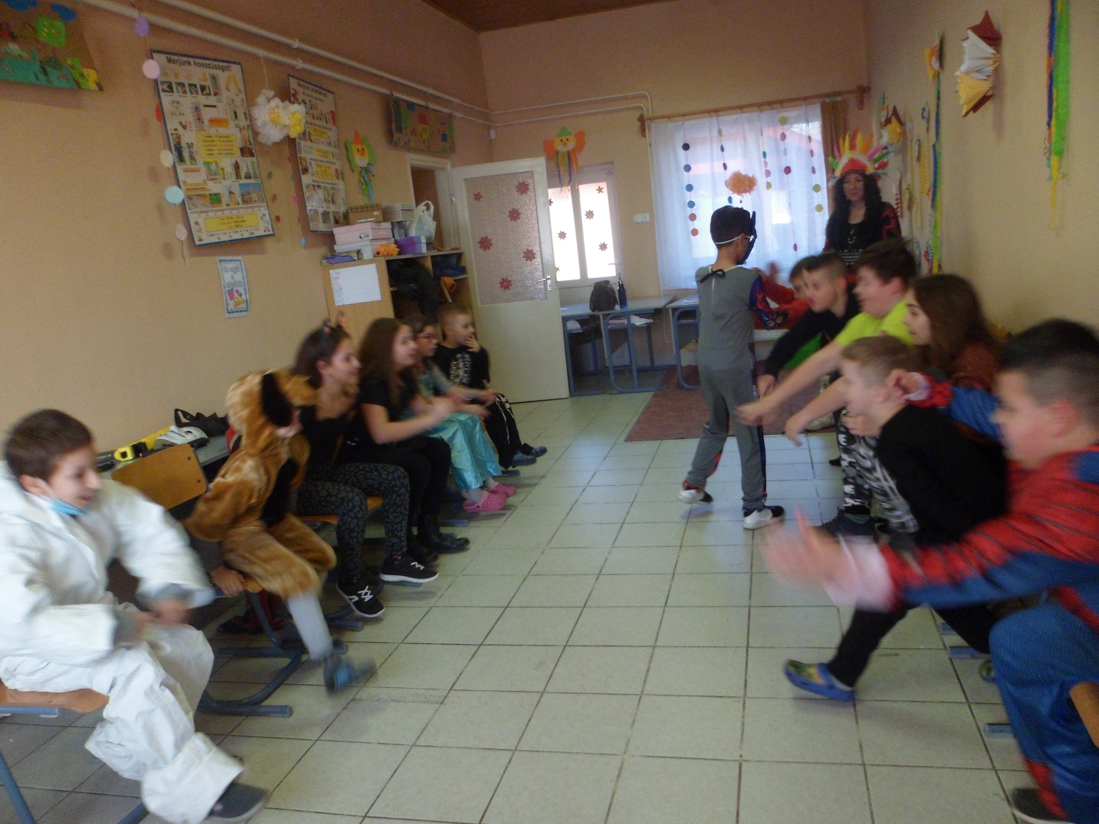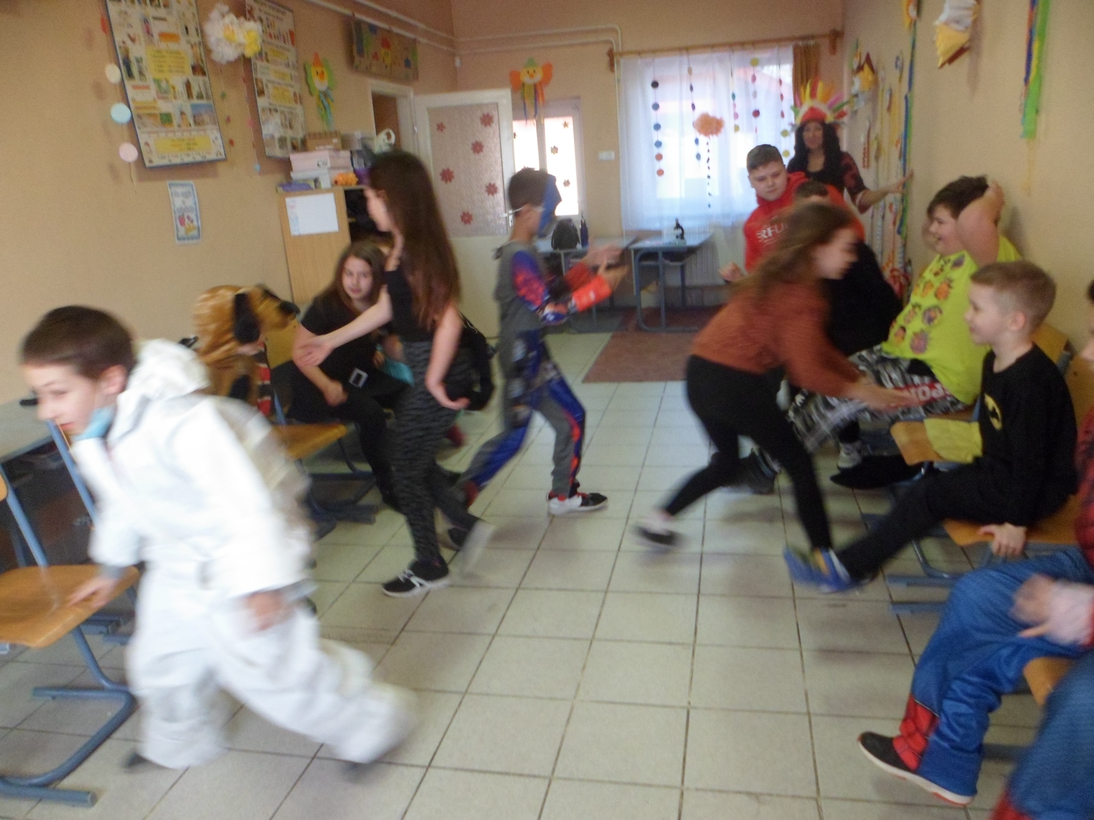 Az alsó évfolyamosok idén is jó hangulatban búcsúztatták a telet. A gyerekek már izgatottan érkeztek az iskolába, nagyon kíváncsiak voltak egymás jelmezeire. Az egész épületben örömmel teli és ünnepi hangulat uralkodott. Az osztályok jelmezversenyekkel, vidám játékokkal, zenehallgatással, énekléssel, közös tánccal töltötték a délelőttöt.
