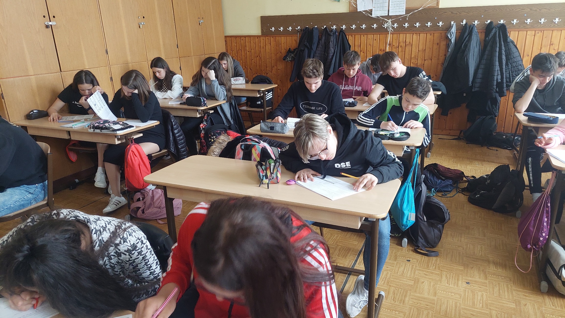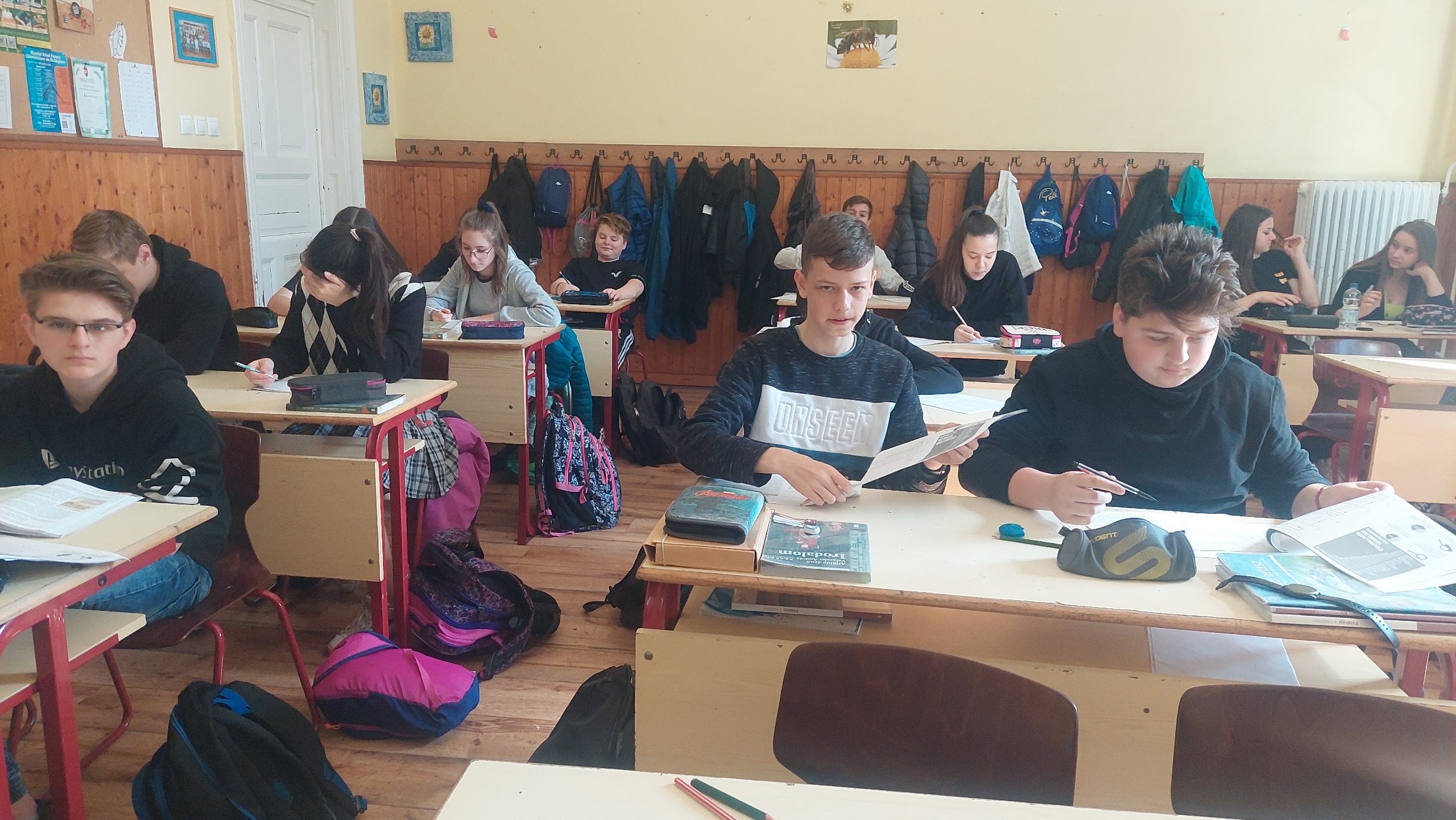 A mai napon ismét ellátogatott hozzánk Kiss Péter kollégám, aki a Mobillabor program keretében ismét különlegesebbnél különlegesebb kísérlettel kápráztatott el minket. Idén szinte olyan kísérletekkel érkezett, amelyeket tanulók segítségével oldott meg. A tanulókkal készítettek elefántfogkrémet, lángot festettek, meggyújtották a metil-alkoholt. Villámokat állított elő egy kémcsőben.