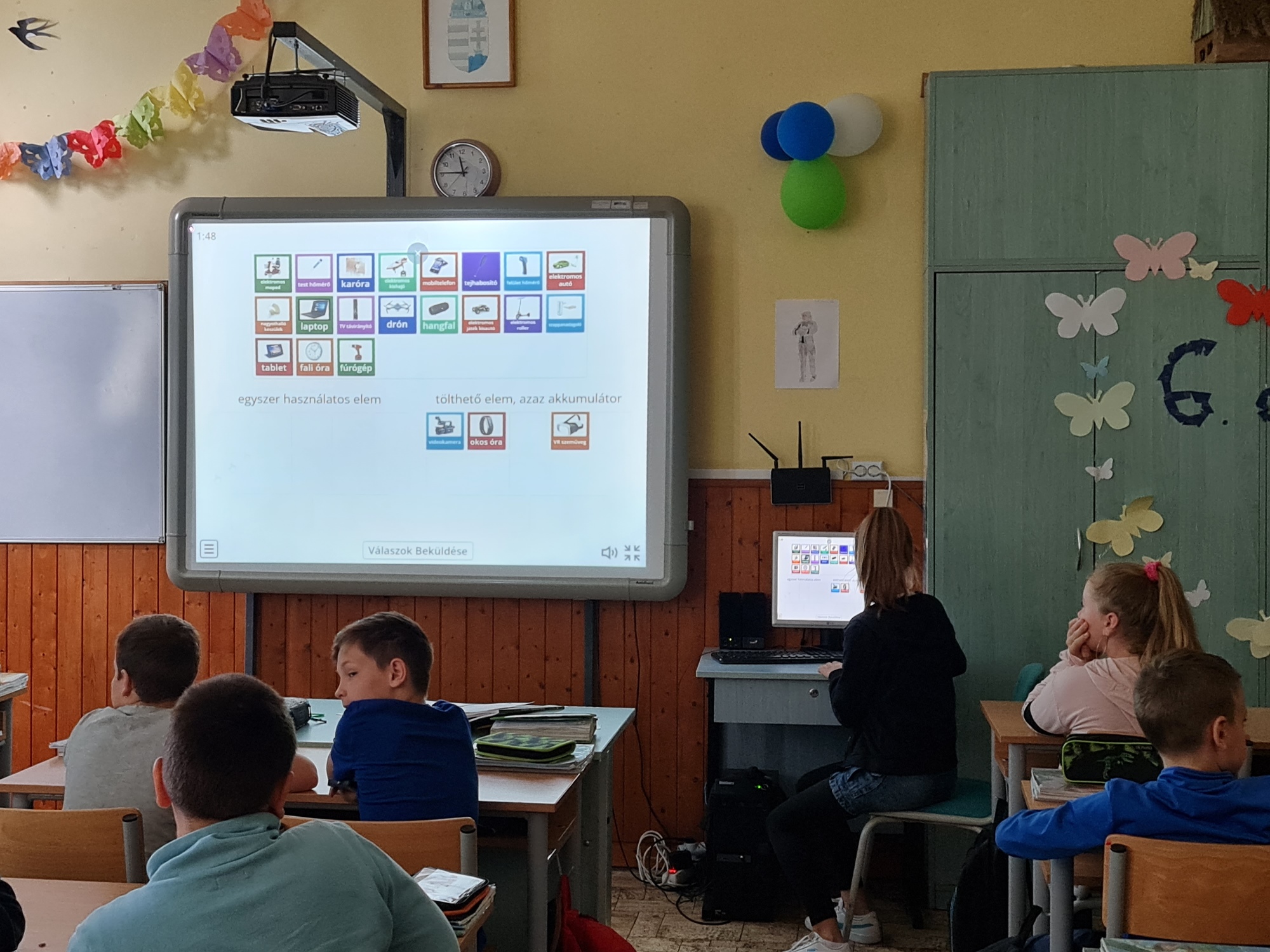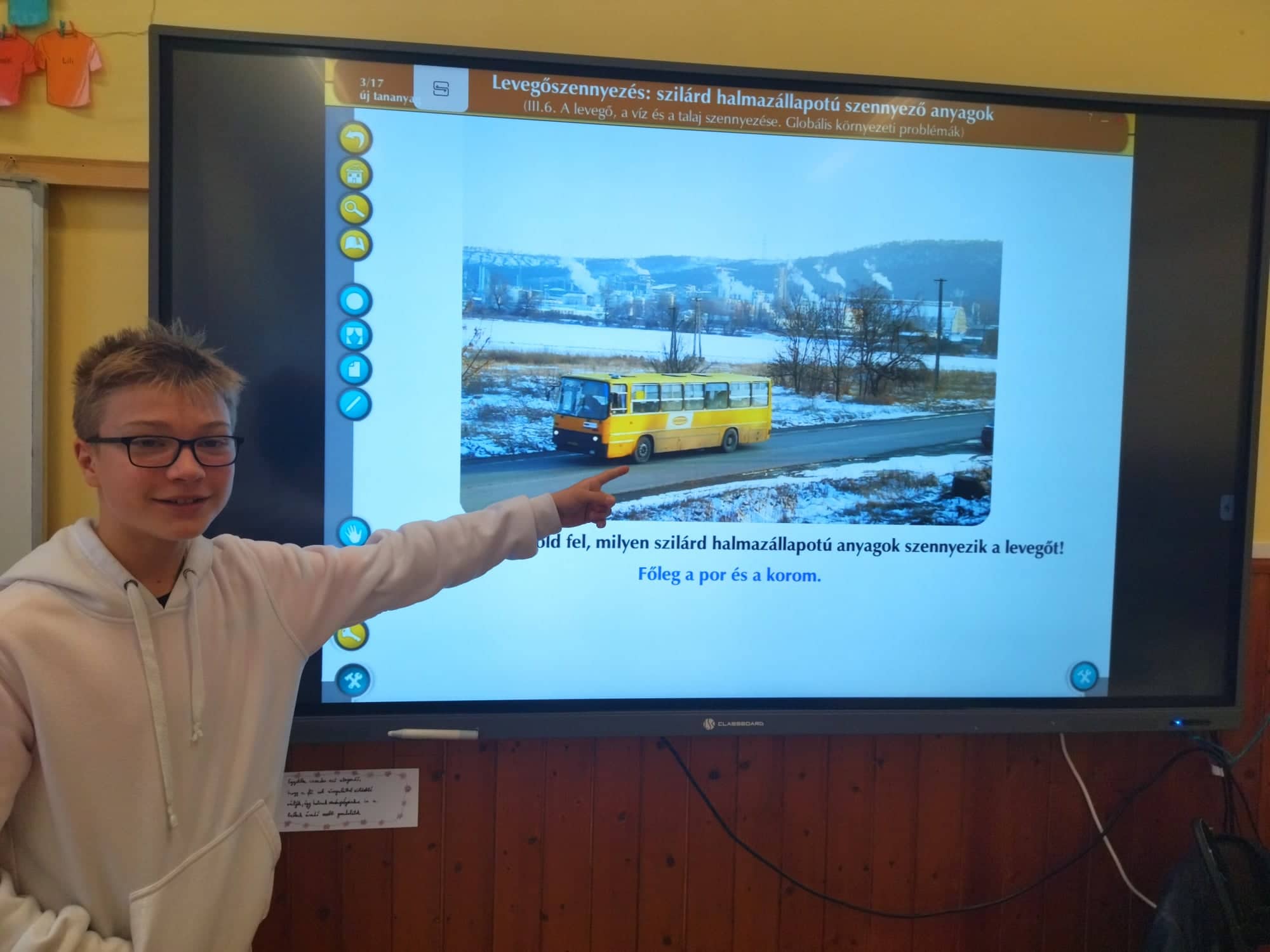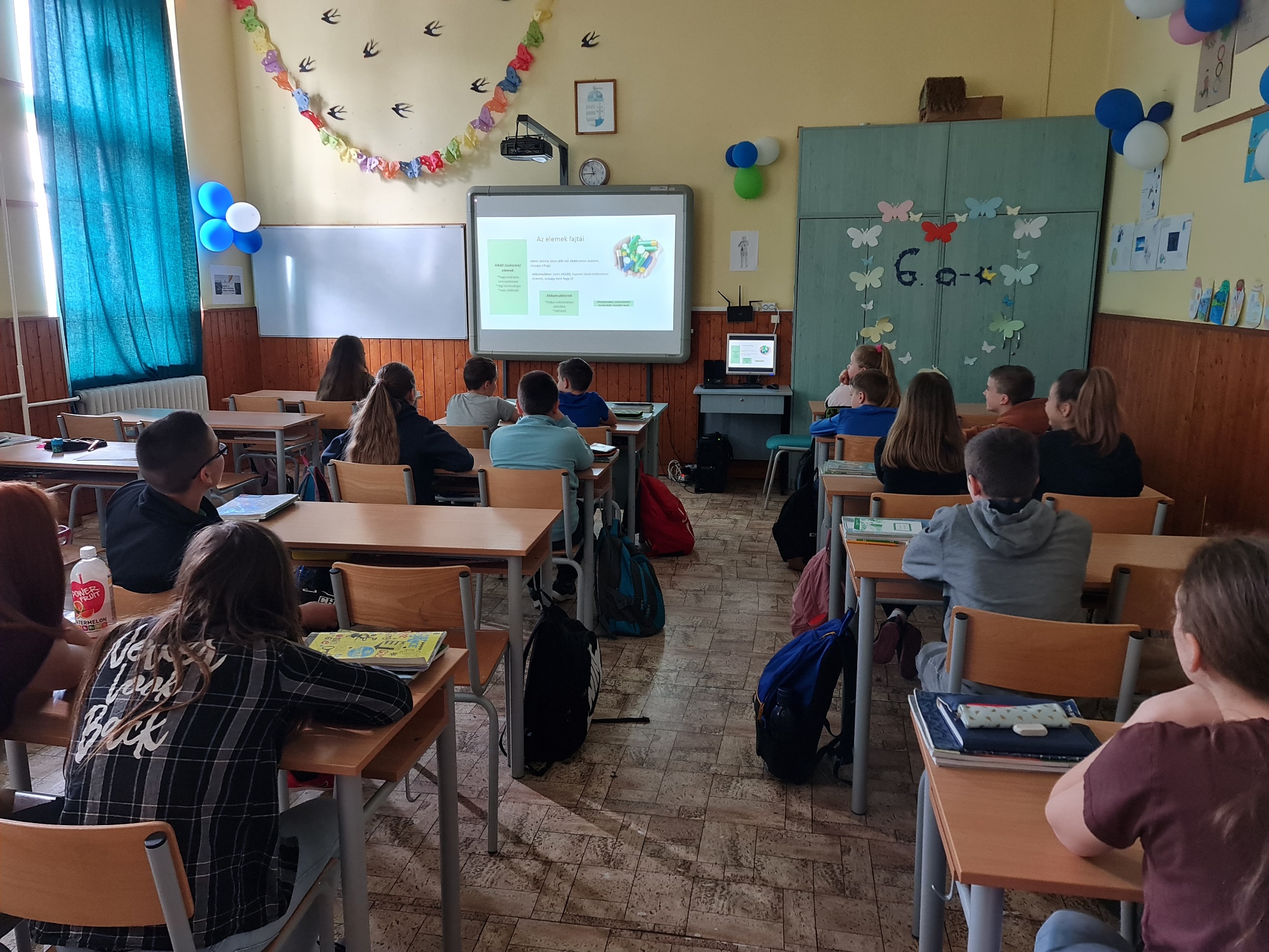 A mai napon ismét ellátogatott hozzánk Kiss Péter kollégám, aki a Mobillabor program keretében ismét különlegesebbnél különlegesebb kísérlettel kápráztatott el minket. Idén szinte olyan kísérletekkel érkezett, amelyeket tanulók segítségével oldott meg. A tanulókkal készítettek elefántfogkrémet, lángot festettek, meggyújtották a metil-alkoholt. Villámokat állított elő egy kémcsőben.