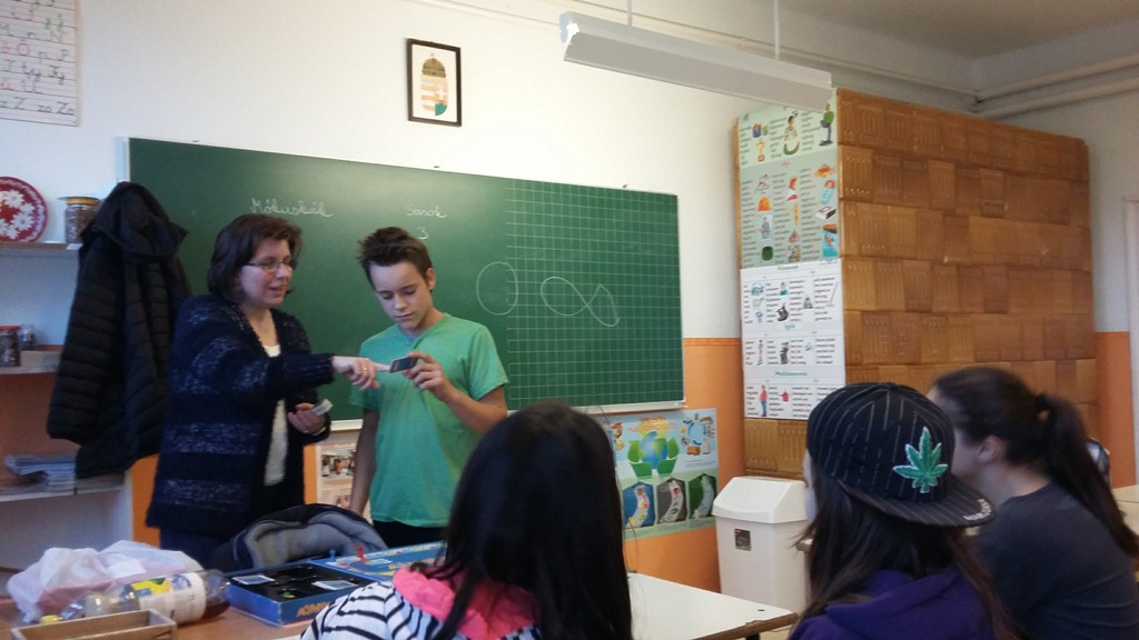A mai napon ismét ellátogatott hozzánk Kiss Péter kollégám, aki a Mobillabor program keretében ismét különlegesebbnél különlegesebb kísérlettel kápráztatott el minket. Idén szinte olyan kísérletekkel érkezett, amelyeket tanulók segítségével oldott meg. A tanulókkal készítettek elefántfogkrémet, lángot festettek, meggyújtották a metil-alkoholt. Villámokat állított elő egy kémcsőben.