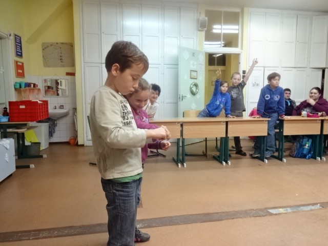 A mai napon ismét ellátogatott hozzánk Kiss Péter kollégám, aki a Mobillabor program keretében ismét különlegesebbnél különlegesebb kísérlettel kápráztatott el minket. Idén szinte olyan kísérletekkel érkezett, amelyeket tanulók segítségével oldott meg. A tanulókkal készítettek elefántfogkrémet, lángot festettek, meggyújtották a metil-alkoholt. Villámokat állított elő egy kémcsőben.